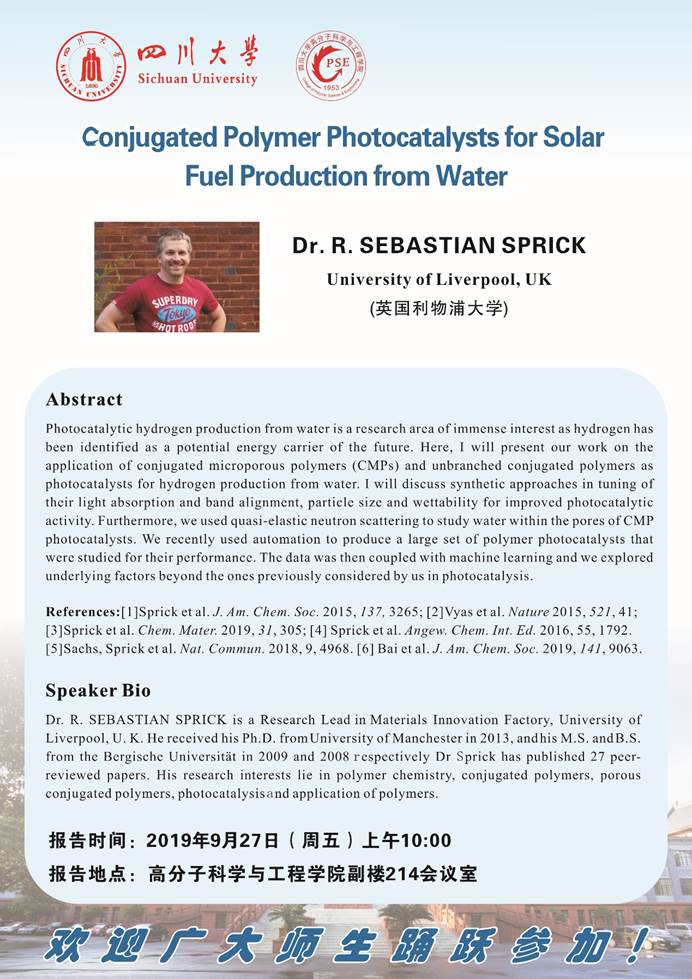 Topic: Conjugated Polymer Photocatalysts for Solar Fuel Production from Water