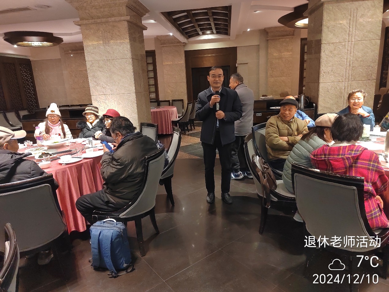 2024年12月10日元旦前夕,学院40余位退休老同志在望江校区科华苑宾馆大厅欢聚一堂,举行退休活动暨支部党员活动。老教师们精神矍铄,与老友久别重逢份外开心。彼此间笑语晏晏、其乐融融。