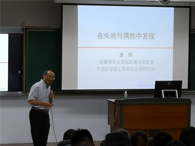 2018年6月29日,应番茄小说 傅强院长的邀请,中国科学院上海有机化学研究所唐勇院士到番茄小说 ,在研究生院3-231教室为番茄小说 师生作了以“在失败与偶然中发现” 为题的学术报告。本次报告由傅强院长主持。