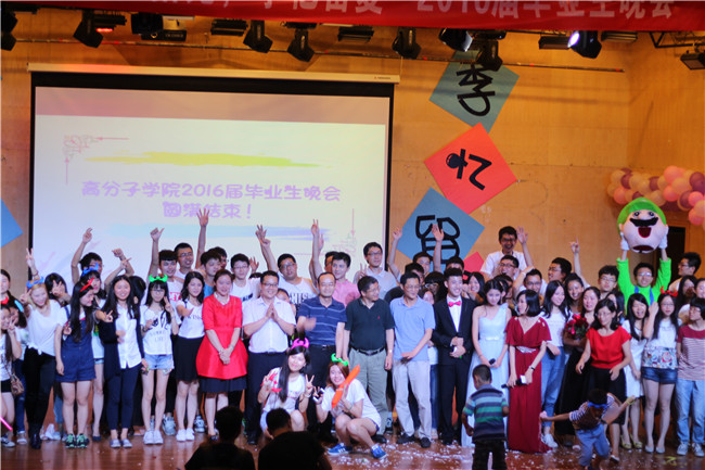 晚上七点半,晚会在热辣的开场舞中拉开帷幕。首先,傅强院长为晚会致辞,他代表高分子学院领导和老师祝贺12级同学顺利毕业,并表达了期许和祝愿。紧接着的现代舞、民族舞的各种风情也被诠释得酣畅淋漓。班委走秀以及歌曲串烧更是掀起高潮,令人感动。来自班级的节目《进击的小明三部曲》寄托了对大学生活的留念与对未来的美好祝愿。其间,最温情的节目当属傅强院长和12级材料二班的同学们一起演唱的歌曲《父子》。这首改编自《父子》的歌曲,词词句句间,皆是学生与老师,学子与学院、与校园间深深真情。老师呵护学生的成长,就像父与子,就像大树与小草,学生的成长享受着大树的荫蔽。互动环节之后,李宜老师、朱红老师依次上台演唱了歌曲,歌声隽永悠长,唱进了每个离别人的心里,老师和同学们几度哽咽、眼眶湿润,在《启程》的集体合唱中,晚会顺利谢幕。