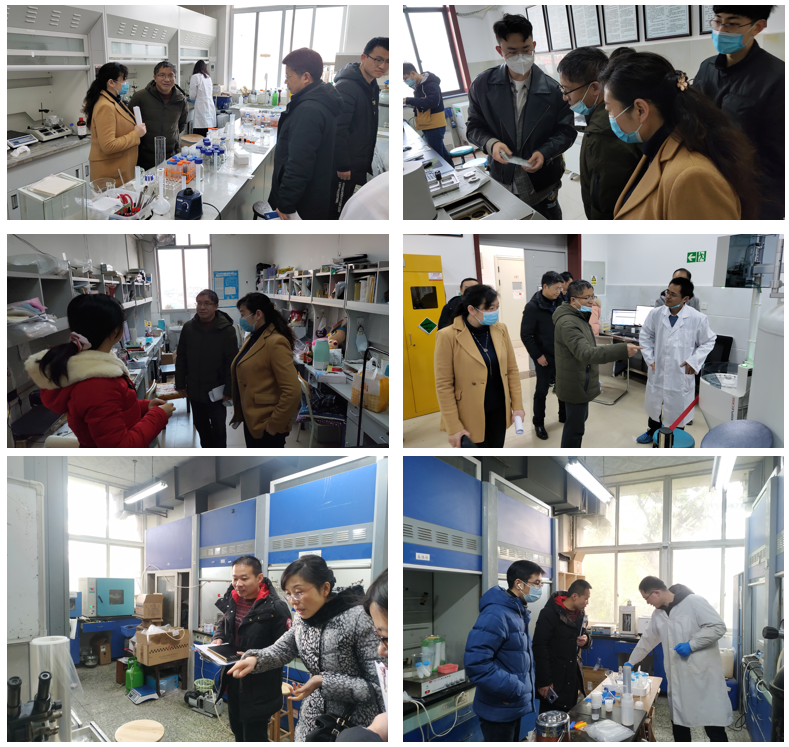 傅强院长、李艳梅副院长、刘习奎老师等一起对西区第四教学楼、逸夫楼及图书馆等实验场所进行全面检查,重点关注实验室试剂的使用、储存等常见安全隐患;此外,傅院长等还查看了实验中心透射电镜、核磁、原子力显微镜等仪器设备,对实验中心10S管理取得的效果予以肯定。冉蓉副院长、杨伟副院长、包睿莹老师和张明华老师等一起对学院主楼、副楼和纺工楼进行全面检查。安全大检查发现的主要安全隐患包括:实验药品摆放较混乱、缺少标签、不及时放回试剂柜等问题。各位老师在检查过程中发现安全隐患后立即通知在场的同学和老师进行整改,督促各课题组放假前消除安全隐患。