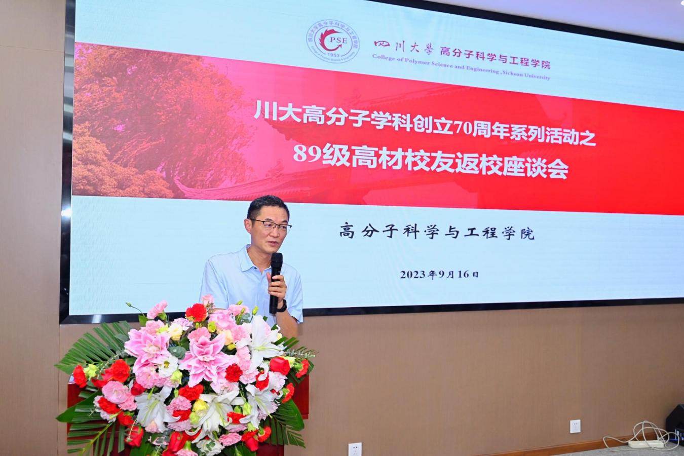 赵长生介绍了近年来川大高分子学科在人才培养、学科建设、科学研究、社会服务等方面取得的成就。他表示,学科取得的阶段性成果离不开一代代川大人的接续奋斗,希望校友们继续关注关心、支持学院的发展。