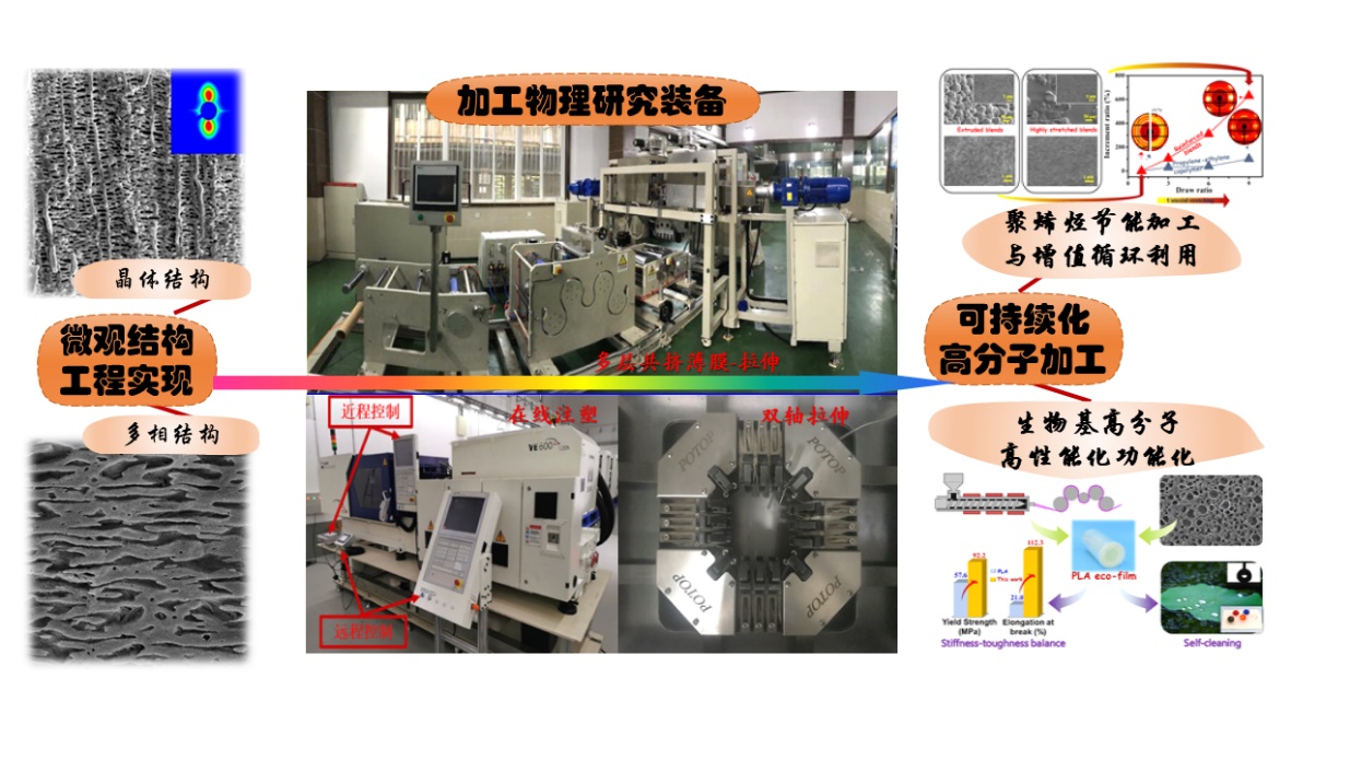 针对高分子可持续化发展问题,我们立足于研究生物基高分子和聚烯烃加工中特定微观结构生成机理及结构性能关系这一核心基础科学问题,利用获得的理论认识,研制新型加工装备提供可控加工外场,在高分子加工中制备了大量取向晶体、特殊晶型、原位纳米纤维、以及取向多孔复合特定微观结构等,并用于聚烯烃增值循环利用、生物可降解聚酯和纤维素的高性能化功能化,从而为高分子的可持续化发展提供新的思路。
