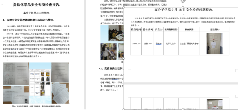 (7)9月18日,保卫处向番茄小说 下发了安全检查建议书。收到安全检查建议书后,番茄小说 积极组织相关课题组老师及实验室安全责任人进行整改,所有实验室均已按照保卫处的要求整改完毕(附件4)。9月30日,按照设备处的要求,提交了高分子学院危险化学品专项检查报告(附件4)。