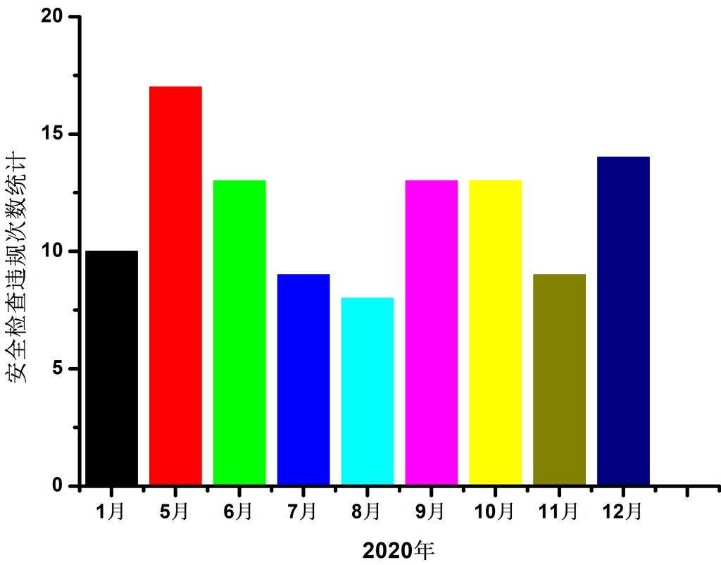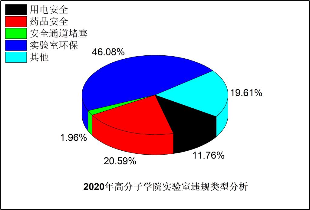 (2)依据《高分子学院安全与环保工作管理规定》,2020年度1-12月份实验室扣分详情见附件2。2020年,累计有47间实验室违反安保管理规定,其中3间实验室扣分≥40分(最高扣分45分),4间实验室扣分≥30分,7间实验室扣分≥20分。