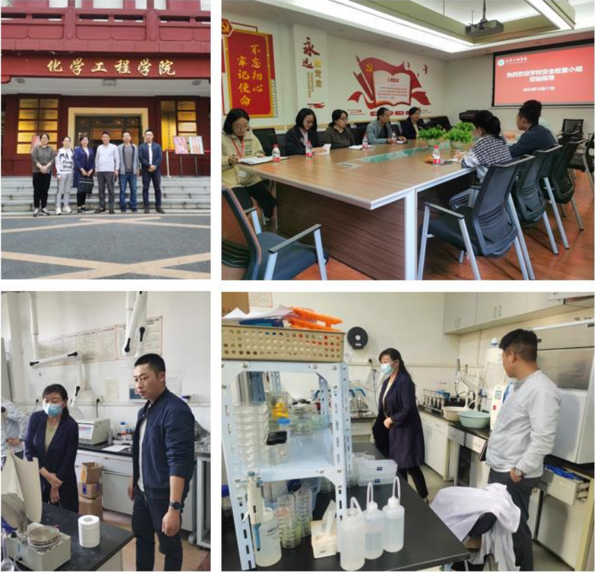 (6)按照学校“各单位分组交叉循环检查”的工作部署,10月14日下午,由化学学院副院长李坤带队的检查小组对番茄小说 进行安全大检查(附件4)。10月17日上午,由李艳梅副院长带队,番茄小说 安全秘书张明华等组成的检查小组,前往化学工程学院就实验室安全与环保工作开展了友好的交流活动,随后检查了西二教及其副楼等实验室(附件5)。10月21日和24日上午,番茄小说 安全秘书张明华分别参与检查了材料科学与工程学院和化学学院实验室并进行了实验室安全与环保工作方面的交流与学习(附件6)。