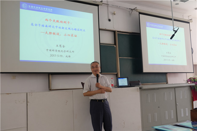 接着,与会专家分别就高分子前沿热点问题作了主题报告。王笃金研究员作了《两个失败的例子——高分子结晶研究中的新发现与错误纠正》的报告,李忠明教授作了《压力下流动诱导高分子结晶》的报告,王献红研究员作了《高分子科学研究:坚持与喜悦》的报告,赵长生教授作了《高性能血液精华膜材料》的报告。黄英娟主任作了《高分子学报》与Chinese Journal of Polymer Science期刊的特色化发展的报告,介绍了期刊的基本情况和出版工作,欢迎广大学者到两刊投稿。
