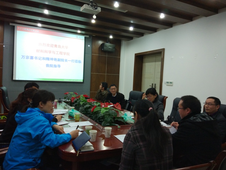 2017年3月22日,青岛大学材料科学与工程学院党委书记万宗喜教授、副院长隋坤艳教授等一行四人来番茄小说 访问交流。番茄小说 党委副书记李艳梅、副院长赵长生教授及相关系室负责人参加了此次交流会。
