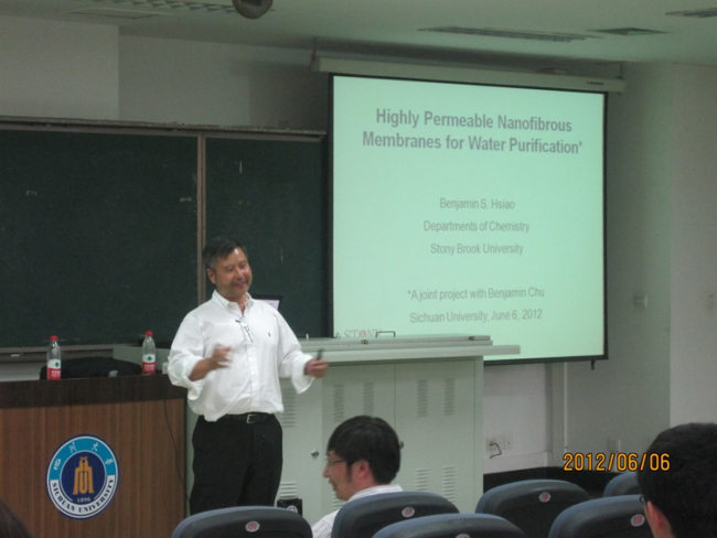 6月6日下午,受我学院诚挚邀请,美国纽约州立大学石溪分校(State University of New York at Stony Brook)副校长Benjamin S. Hsiao教授为番茄小说 师生带来了题为“High Permeable Nanofibrous Membranes for Water Purification”的学术交流报告。