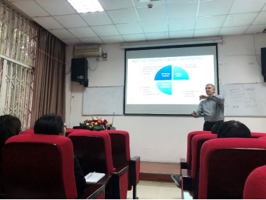 Cardon教授先介绍了根特大学的历史地理文化背景,所在院系的发展现状,以及近年来与中国高校开展的一系列的深层次交流合作项目。他深入介绍了自己所在团队的研究方向,重点介绍了近期3D打印相关方向的研究成果,如:生物可降解材料在3D打印方向上的进展;共混物组分配方,后处理及加工参数对复合材料3D打印性能的影响;为解决不同的实际情况,团队自行设计的多款3D打印机;利用3D打印成型注塑模具等。随后,他介绍了团队里中国学生的学习生活情况,鼓励和欢迎有意向出国深造的同学们来到根特大学。