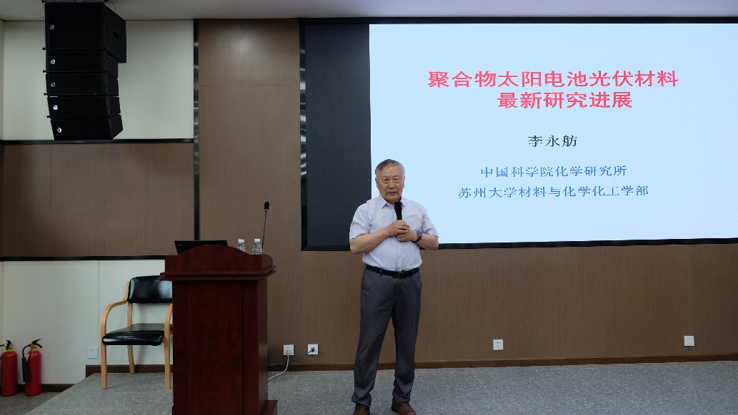 李院士围绕“聚合物太阳电池光伏材料最新研究进展”给大家分享了有机太阳电池的发展历程和最新研究成果。李院士重点从获得高效率PSC的关键即给体和受体材料的吸收互补和能级匹配出发,为大家详细介绍了其团队在给体和受体光伏材料方面的最新研究进展。李院士研究团队提出的高效给体和受体光伏材料的分子设计策略(如侧链工程等)极大地提高了聚合物太阳电池的转化效率。报告最后,李院士对师生提出的问题作了耐心解答。