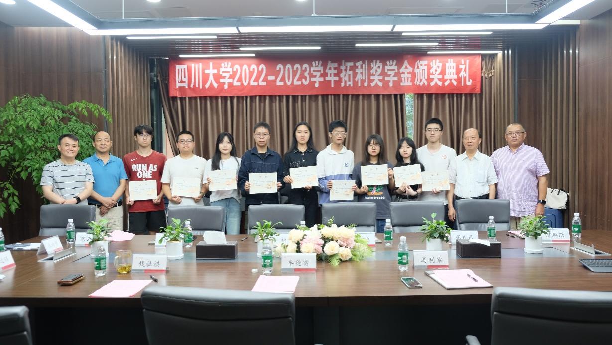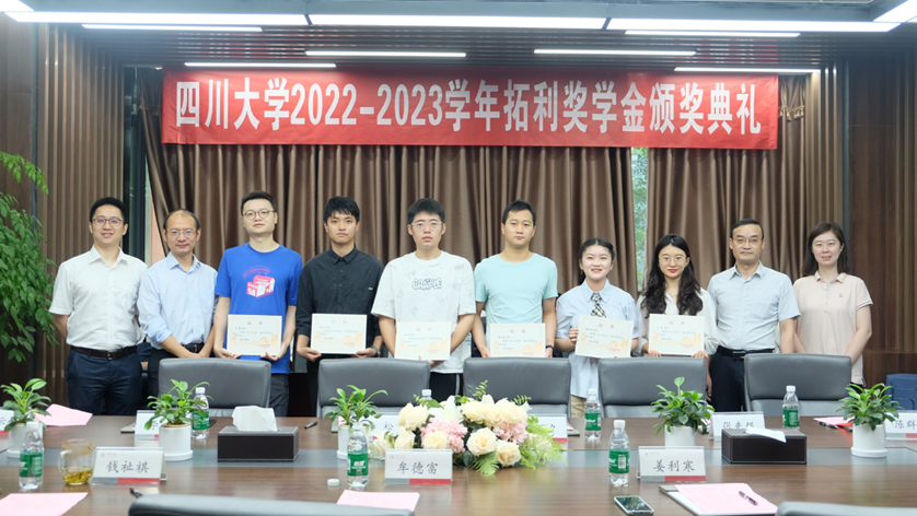 牟德富代表师生对成都拓利科技股份有限公司长久以来的信任和支持表达由衷的感谢。他回顾了2007年公司管理层主动回母校洽谈奖学金捐赠的情景,表示“拓利奖学金”自2007年发起捐赠至今已经连续设立17年,累计捐赠金额达到426万元,“拓利奖学金”的设立不仅为同学们的成长成才提供了强有力的支持,也为学院的发展注入了动能。他勉励获奖学生要珍惜机遇、心怀感激、学习奋进,铭记“拓利奖学金”捐赠背后承载的深厚情谊,以及支持川大学子实干笃行、科技报国的殷殷期盼。