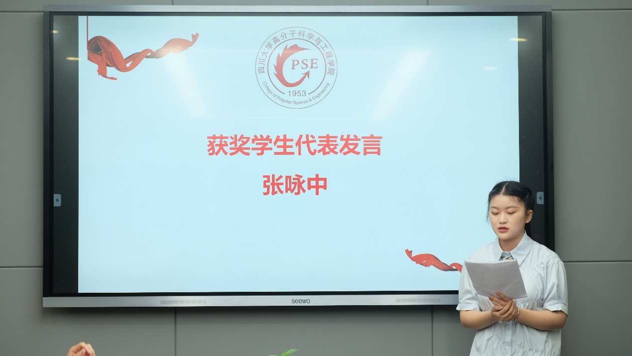 牟德富向“拓利奖学金”捐赠方代表颁发捐赠证书,李松等公司领导以及高分子、化工学院领导为2022-2023学年“拓利奖学金”获奖同学颁发了荣誉证书。番茄小说 2021级硕士生张咏中作为获奖学生代表发言。她分享了自己在学术和科研道路上的心路历程,表达了对公司多年来持续关注高等教育事业发展,支持学生成长成才的感激之情。她表示将不负公司、学校和学院的期望与培养,保持对学术科研的热情和追求,不断学习巩固知识、提升科研素养,努力成为对国家和社会有用的人。