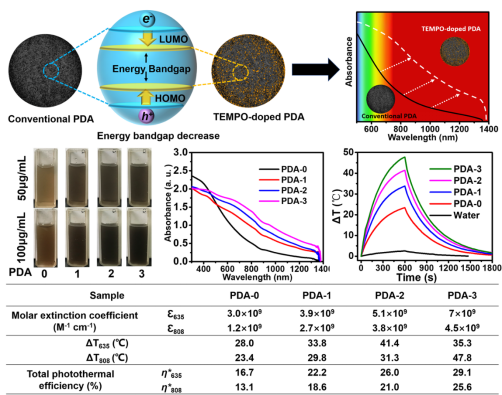 图2:人造黑色素与聚多巴胺材料吸收光谱和光热行为调节的新策略