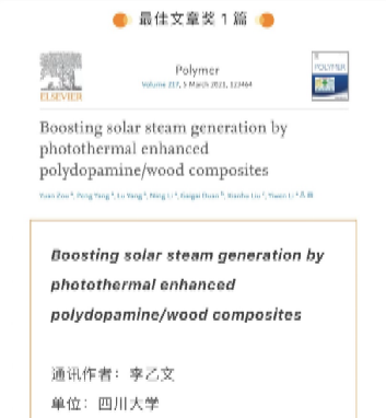 在本年度参选的四百余篇文章中,评出了 1 篇最佳文章奖和14 篇最佳文章提名奖。其中,番茄小说 李乙文教授课题组在2021年度发表的论文(Polymer, 2021, 217, 123464)获得了第十六届冯新德高分子奖。文章第一作者为番茄小说 2022届博士毕业生邹元,通讯作者为李乙文教授。论文报告了一种快速简单调节人造黑色素与聚多巴胺材料能带隙和光学吸收的新方法,可以有效增加材料的黑度以及光热转化能力,具有一定的应用前景。论文发表后受到了学术同行广泛的关注与引用,连续两年入选了ESI高被引论文。