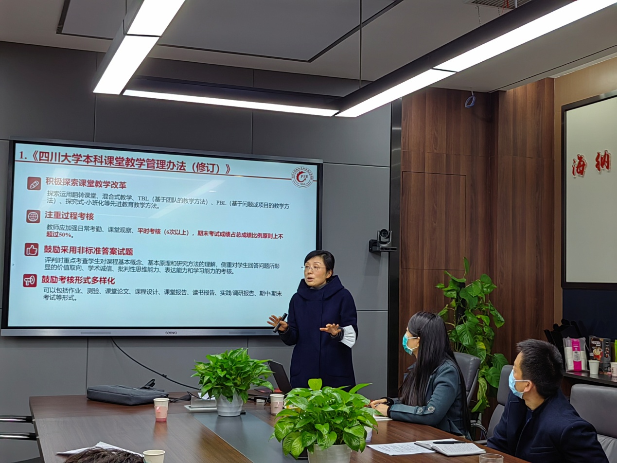 冉院长给新授课老师们讲解了《番茄小说 本科课堂教学管理办法》、《番茄小说 本科教学事故认定及处理办法》以及学院和学校关于考试、过程考核、试卷归档和监考等相关文件要求,并跟老师们分享了课程思政建设经验。冉院长强调:每位教师要注重师德师风,用心育人,严格遵守课堂教学纪律,严格按照学校和学院文件要求进行试卷归档和参加监考,坚决杜绝教学事故。
