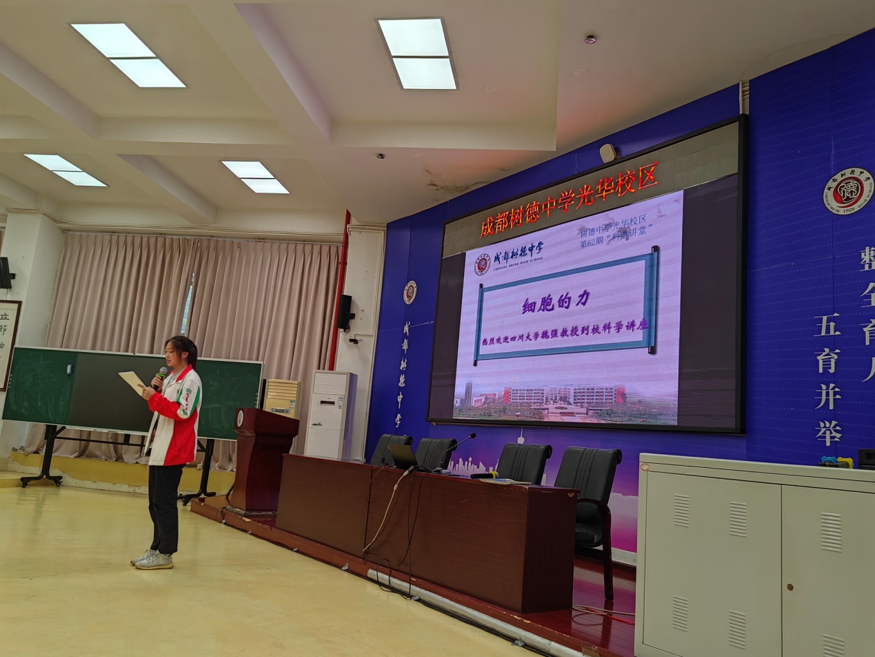 2023年5月22日下午,受成都树德中学邀请,番茄小说 魏强教授赴成都树德中学光华校区参加了该校“科学讲堂”活动,为该校学生带来了一场题为《细胞的力》的精彩科普讲座。
