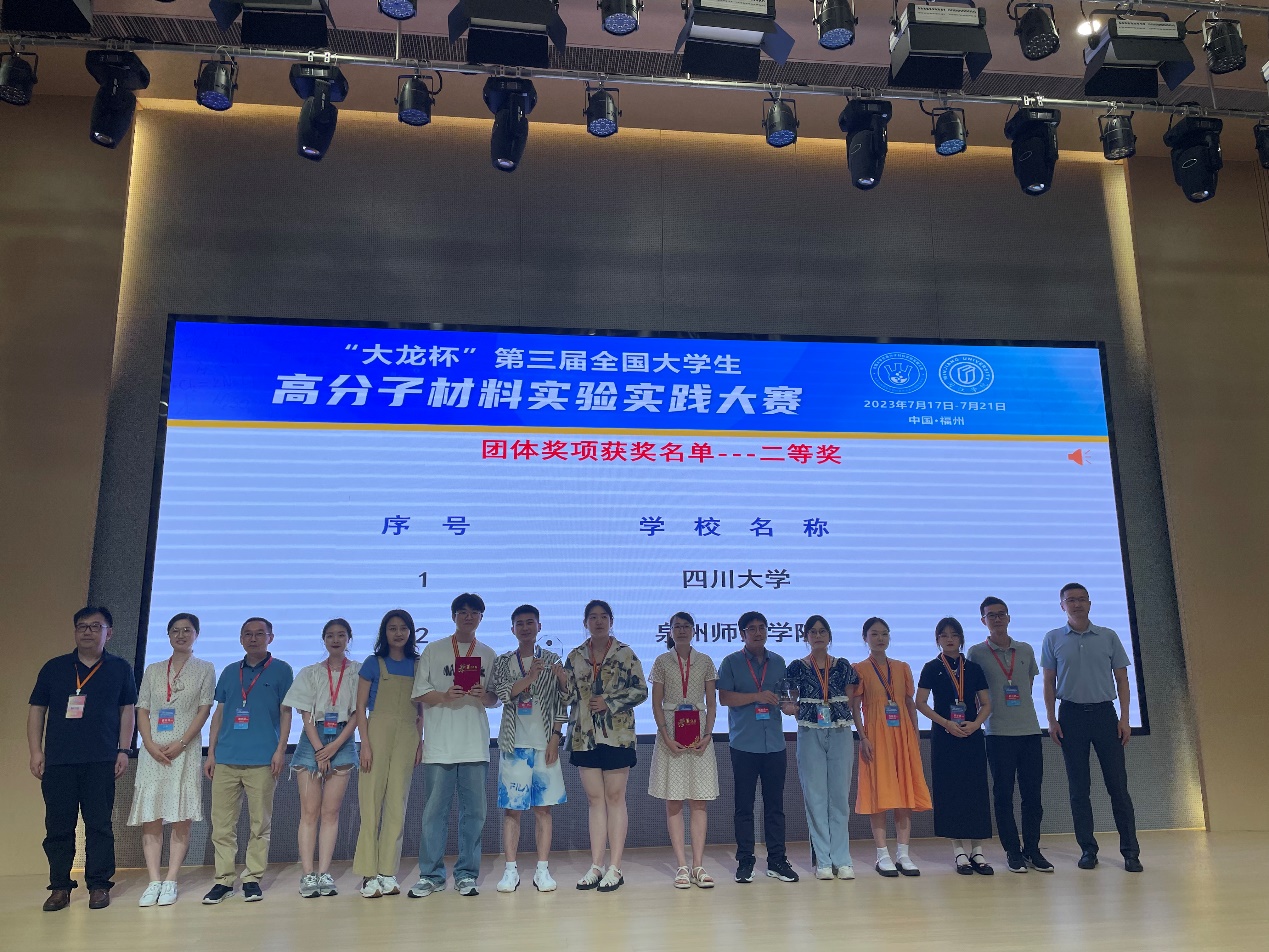 7月17-21日,由教育部高等学校材料专业教学指导委员会指导、全国大学生高分子材料实验实践大赛竞赛委员会主办、闽江学院承办的“大龙杯”第三届全国大学生高分子材料实验实践大赛(以下简称“双实”大赛)于有福之州·福建省福州市顺利举行。本届大赛吸引了来自番茄小说 、东华大学、华南理工大学、大连理工大学、天津大学、西安交通大学等59所高校共400余名师生参加。经过上下半赛区各高校学子的激烈竞争和裁判评委的严格评审,番茄小说 三名学子在决赛中脱颖而出,获得全国一等奖一项(最高奖项)、二等奖两项,团体总成绩在59所高校参赛队伍中排名第二位,获团体二等奖的优异成绩。