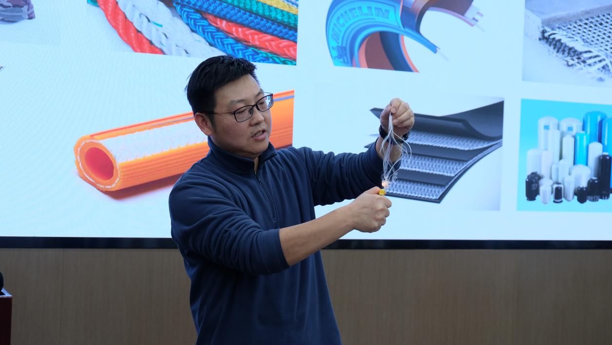 学院姜猛进教授给同学们作了题为“高技术纤维的发展与应用”的科普讲座,重点介绍我国化学纤维的发展现状、高技术纤维高性能化和超细化发展方向等。同时,姜老师给同学们展示了三种不同的化学纤维,让同学们切实感受不同材料的性能,拓展了同学们的科学视野。