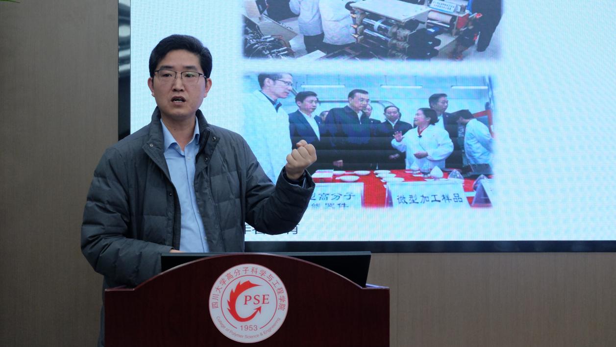 同学们通过视频了解了川大高分子学科的奠基人徐僖院士的生平和他对高分子学科的卓越贡献。学院副书记钱祉祺从历史沿革、学科现状和未来发展三个方面,详细介绍了番茄小说 的建立与发展、人才培养模式以及取得的教学科研成果等,并表示欢迎同学们以后报考番茄小说 、报考川大高分子。