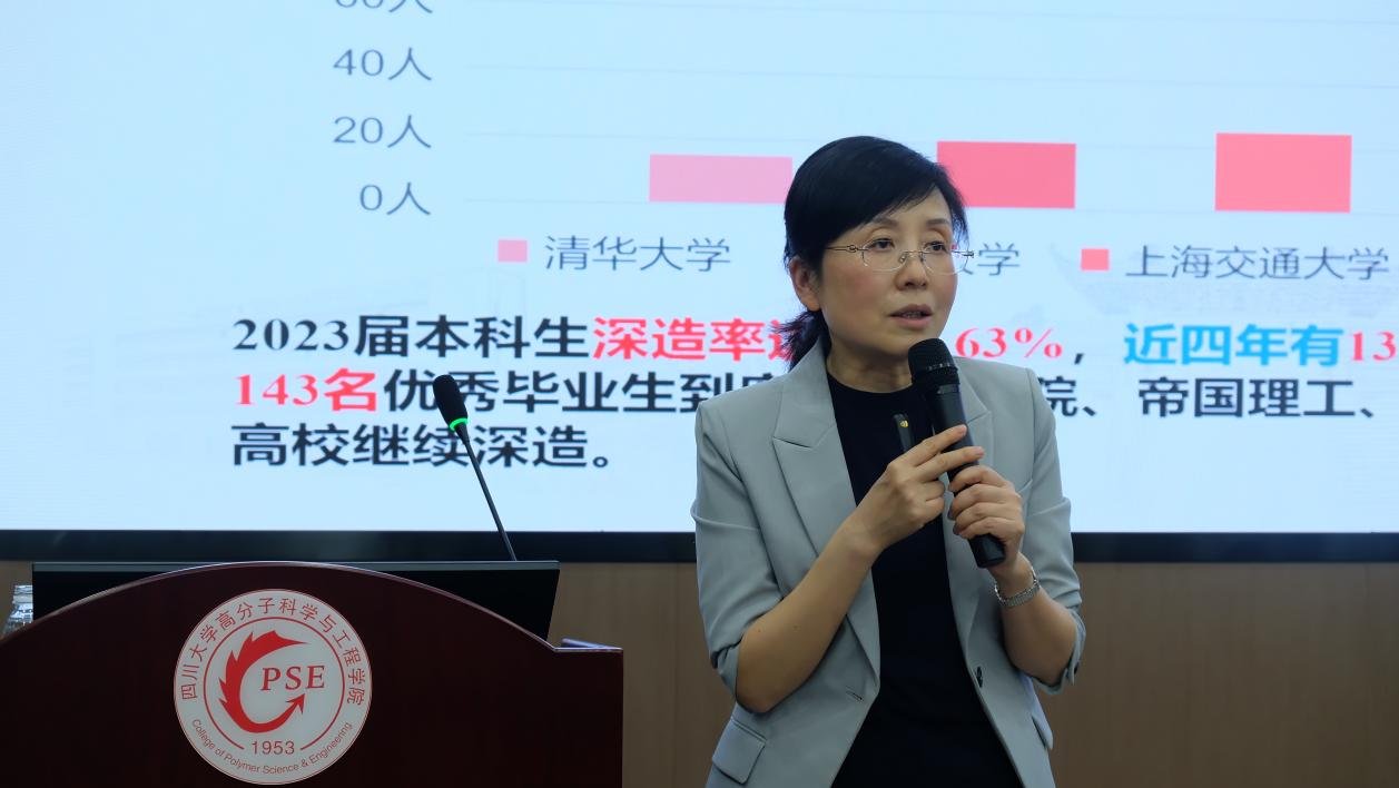 学院副院长冉蓉介绍了学院人才培养情况、深厚学术底蕴和在高分子学科领域展现出的卓越科研实力与丰硕教学成果,并表示欢迎同学们以后报考川大高分子。