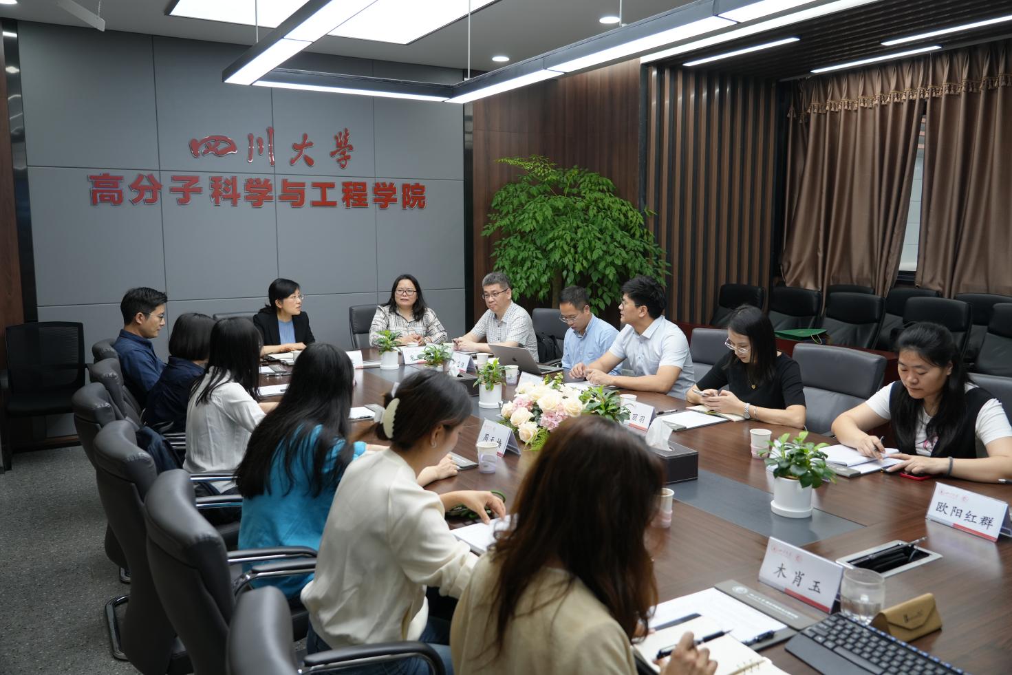 冉蓉代表学院对中山大学材料科学与工程学院宋树芹副院长一行的到访表示热烈欢迎,并对川大高分子历史沿革、学科现状、人才培养、师资队伍建设、科学研究等基本情况进行了详细介绍。宋树芹介绍了中山大学材料科学与工程学院近年来在人才培养、专业建设、师资队伍建设。随后与会人员就专业认证、人才培养、师资队伍建设、课程和教材建设等方面进行了深入的交流。