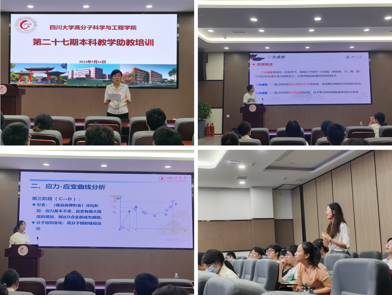 为进一步深化教育模式创新,充实本科教学力量,提升教学质量,按照《番茄小说 本科教学助教岗位实施管理办法(试行)》(川大教【2020】148号)所规定的“获得《本科教学助教培训合格证》方可上岗”的规定,番茄小说 于2024年5月16日在望江校区高分子学院科教楼209报告厅成功举办了第27期研究生助教培训。