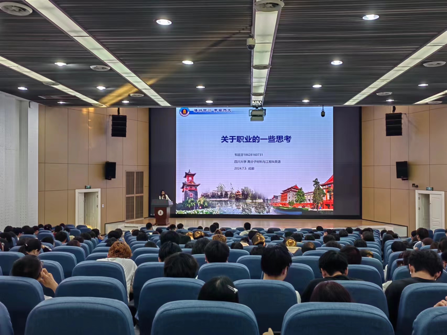 前美敦力高级地区经理、现施乐辉高级经理韦延芬校友作了主题为《关于职业的一些思考》的讲座。韦延芬高级经理是在2010年从川大高分子毕业,在大学期间表现优秀的她获得了保送研究生的资格,但在实习过后选择了直接就业。她为大家分享了自己毕业十多年来的两段工作经历,通过讲述职场中的一些故事让同学们认识到工作所需的综合素质和能力,并结合自己的亲身经历向同学们强调在大学乃至工作中自我培养与自我教育的重要意义。韦经理准备充分、讲解细心,注重与同学们互动,她从资深职场工作者的视角为同学们解疑职场中会遇到的一些问题以及正确的处理方法,通过本次讲座学习,同学们对职场工作以及大学期间的能力培养有了新的认识,更加理解了培养综合素质能力的重要意义。