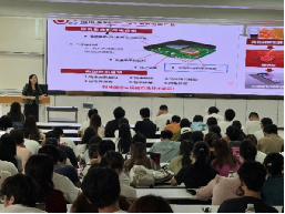 讲座在任老师的热情的开场主持中拉开了帷幕,邢云亮总经理介绍了科宜高分子从初创到成为苯并噁嗪树脂龙头企业的历程,分享了建立全球最完整的苯并噁嗪技术样本大数据体系的经验,以及参与“互联网+”大赛的心得。第二位分享者是潘锦功总经理,他讲述了碲化镉发电玻璃的研发与应用历程,并强调了坚定的信念和科技创新在克服困难、赢得市场认可中的关键作用。