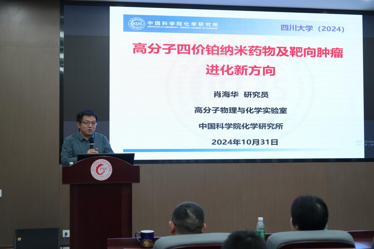 肖海华作题为“高分子四价铂类药物及肿瘤进化靶向研究新方向”的报告。分享了研究团队在药物、肿瘤、细胞、基因等方面的研究进展,特别是关于纳米技术和进化医学的应用。强调了肿瘤的演化特性及其对药物治疗的影响,指出传统药物设计往往忽视了肿瘤的动态变化,导致疗效受限。他提出了一种全新的纳米药物设计理念,即在设计药物时不仅要考虑静态的药物性质,还要考虑到肿瘤演化的动态特性,通过模拟和预测肿瘤的演化路径来优化药物设计。