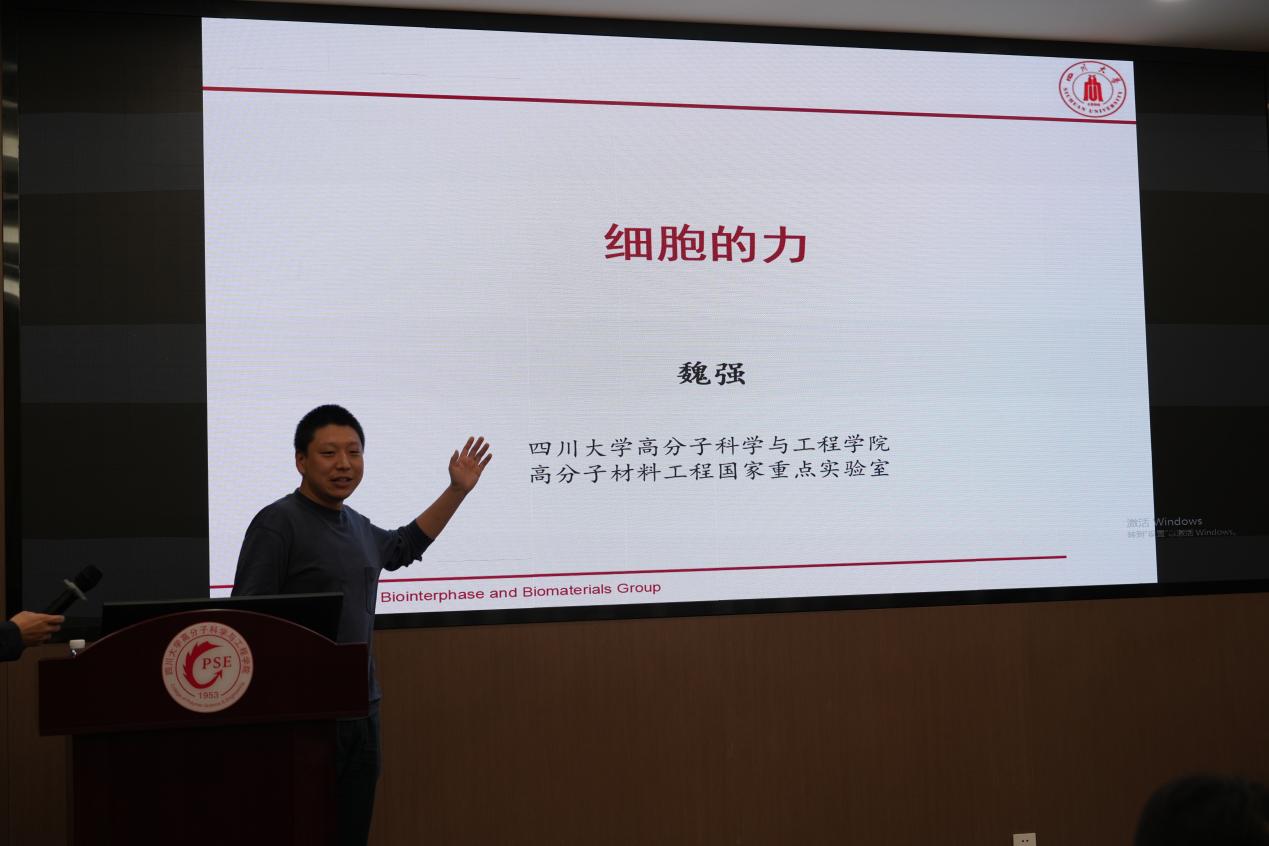 魏强作题为“细胞的力”的报告。详细介绍了自己在细胞力学和细胞壁基础研究方面的成果。他指出,尽管不同类型的细胞在基因信息上是相同的,但它们的功能差异主要源于选择性转录和复杂的生化信号调控。然而一个长期被忽视的因素是物理力学信号对细胞功能的影响。魏强老师的研究团队通过一系列实验和理论分析,揭示了细胞内部的物理力学信号如何调控基因表达和细胞行为。魏老师强调,未来的研究将更加注重多学科的交叉融合,结合生物学、物理学和工程学等领域的知识,推动细胞力学研究的进一步发展。
