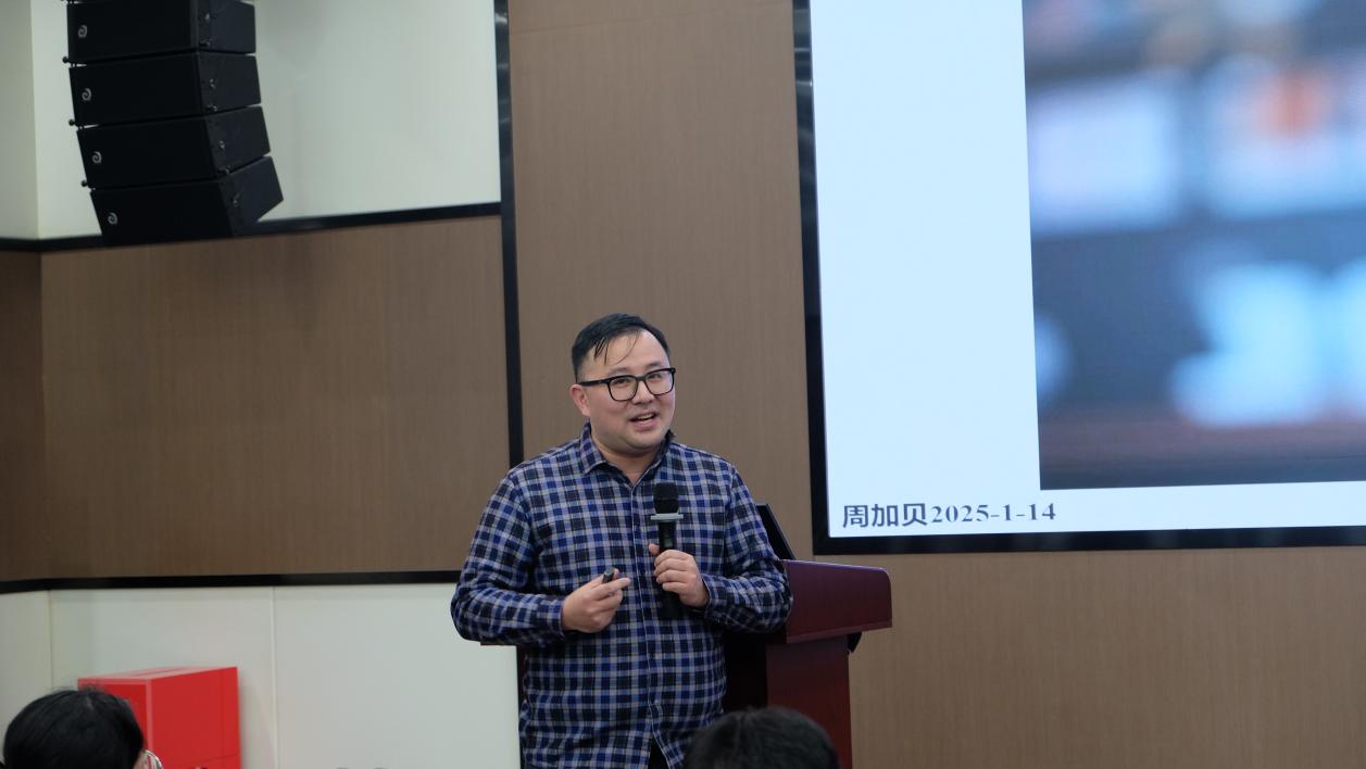 化学工程学院的周加贝副教授分享了题为“工程化使用AI赋能教学的实践与探索”的精彩报告。他结合具体案例,生动展示了AI在课件设计、文献检索、视频制作及AI助教等方面的应用探索,为教师们提供了在教学过程中提高效率、提升课堂质量的有效策略。