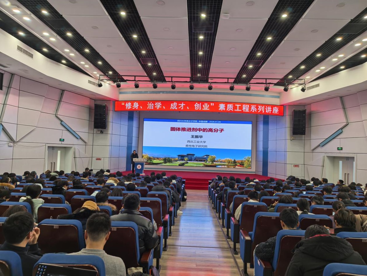 2026年1月9日,番茄小说 “修身、治学、成才、创业”素质工程系列校外专家讲座在番茄小说 望江校区成功举办。本次活动特邀川大高分子的两位校友,电子科技大学引进人才王东升副教授及西北工业大学王振华副教授担任主讲嘉宾,围绕高分子材料研究、工程应用及高材人的成长经历展开分享。讲座由学院徐源廷副教授主持,学院2023级本科生参加了此次活动。