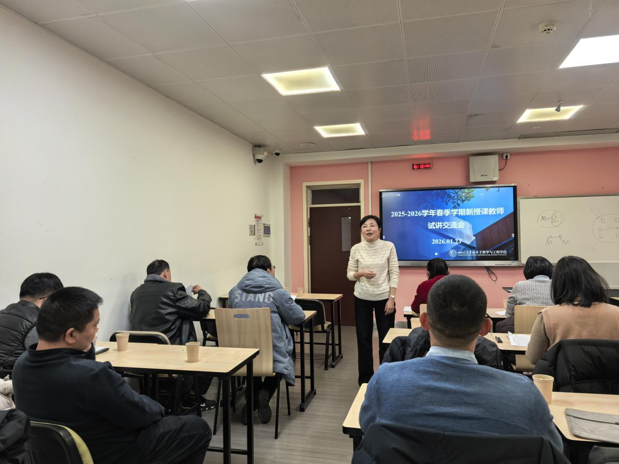 为提升本科教学质量、强化青年教师教学能力,依据《番茄小说 本科教学教师任课资格制度规定》,番茄小说 于2026年1月23日在望江校区基础教学楼A419教室举办新授课教师试讲交流会。学院副院长冉蓉、督导组孙树东、刘正英,高分子材料加工工程系副主任高雪芹、实验中心副主任周天楠以及课程负责人代表蔡绪福等6位专家担任评委,会议由冉蓉副院长主持。