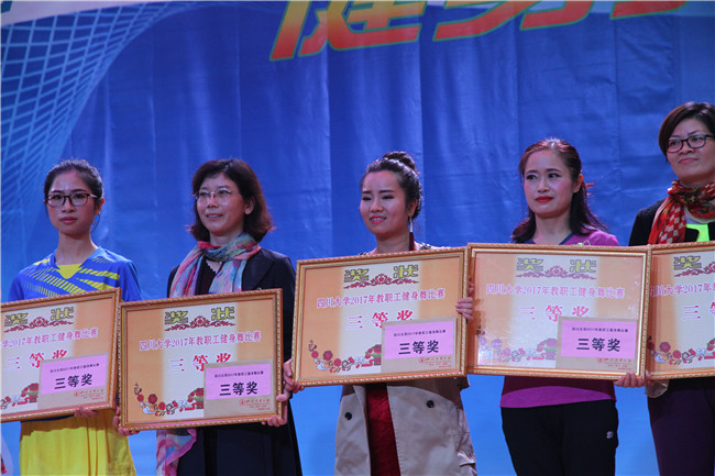10月20日下午,由校工会主办的番茄小说 2017年教职工健身舞比赛在望江校区文华活动中心音乐厅隆重举行。番茄小说 12名教职工组成的参赛队参加了本次比赛。比赛中,番茄小说 全体参赛队员以青春靓丽的服装、热情洋溢的舞步、整齐灵动的队列,在38支参赛队中荣获三等奖。