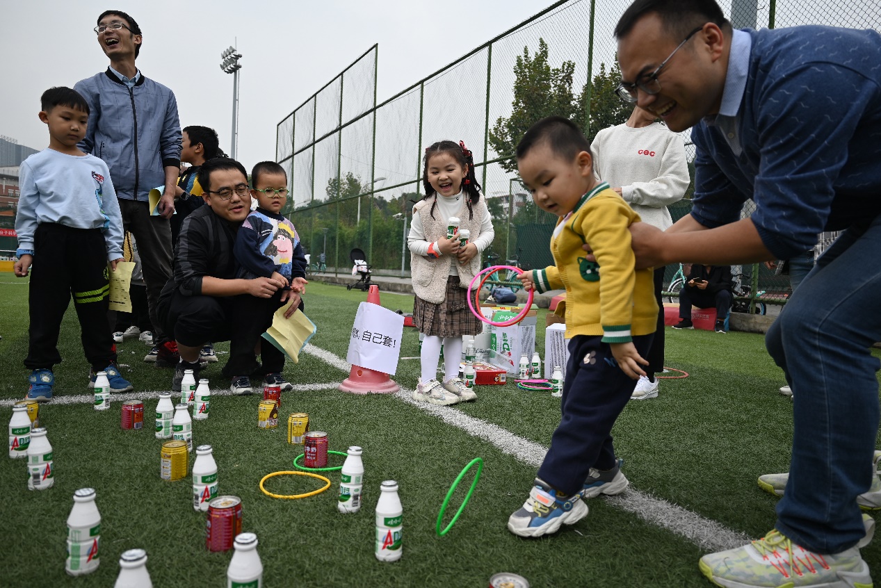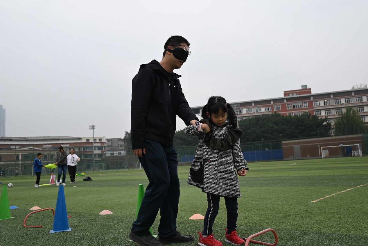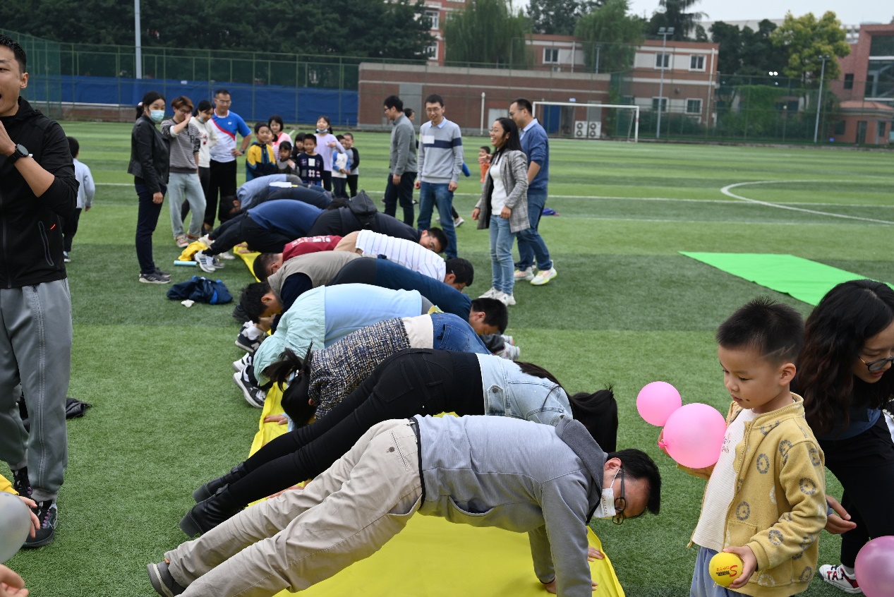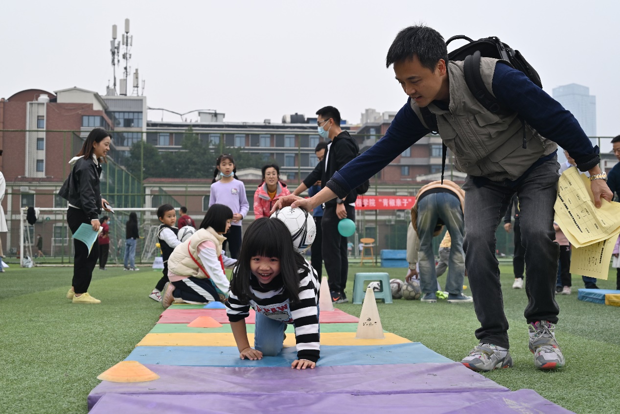 在“西瓜运送”环节中,小朋友们在父母的引导下向前爬行,有趣的比赛过程吸引了在场所有人员的关注和掌声;“想喝水?自己套!”区域摆满了娃哈哈饮料和旺仔牛奶,吸引了大批老师和小朋友参与,老师们或指导孩子如何套中自己心仪的饮料或亲自上阵体验,充分享受参与活动的乐趣;“齐心协力”区域,家长和小朋友同心协力,利用布将球从起点出发运往终点;“小手拉大手”游戏中,小朋友牵着蒙上眼睛的家长穿越障碍到达终点,充分锻炼了亲子默契度;在“垒球投准”和“足球射门”游戏中,老师们耐心指导小朋友如何命中目标。 “南水北调”、“保卫萝卜”、“气球接力”和“你抛我接”等项目也吸引了众多老师和小朋友们的参与,让青年教师和自己的子女在共同完成任务的同时增进彼此之间的感情。整个亲子游园活动过程中,孩子们个个不怕困难,与家长一起面对每个挑战,现场欢声笑语不断,展现了一幕幕精彩的亲子互动瞬间。