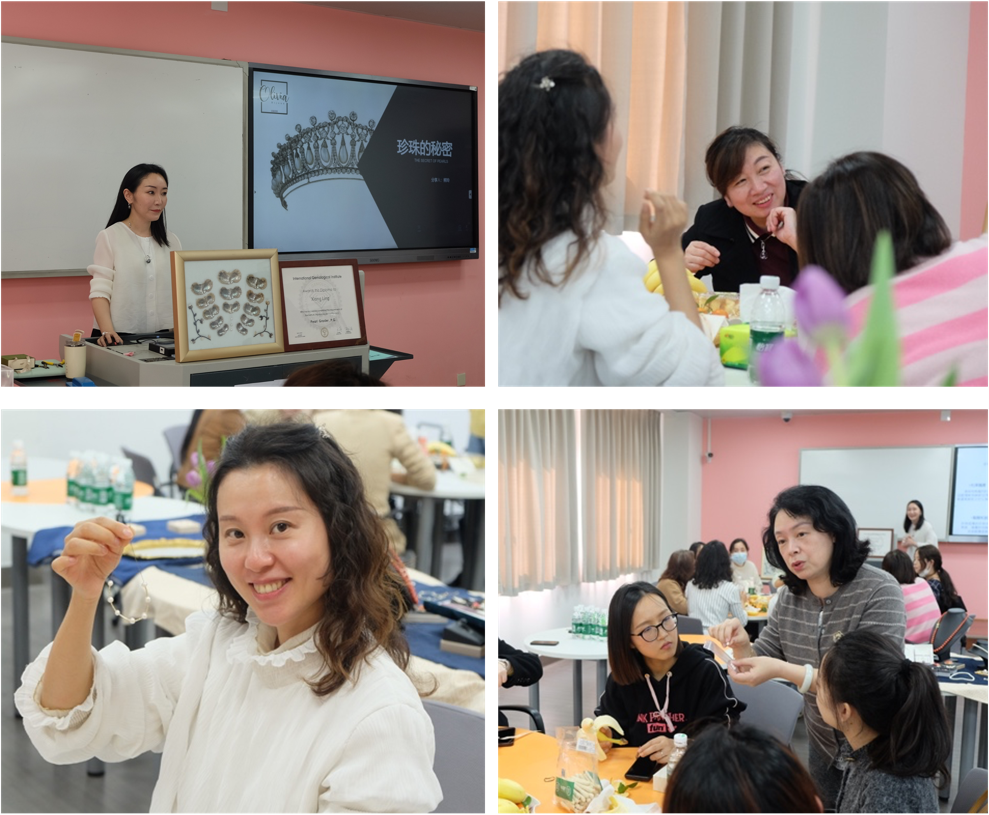 下午两点,来自工作室的老师们带领学院女教职工们了解了有关珍珠的历史知识和鉴别技巧,并引导老师们现场制作了精美的珍珠手链。大家兴趣盎然、跃跃欲试,在专业老师的指导下纷纷制作出了自己独一无二的作品,制作过程带给了教职工们满满的成就感和满足感,亲手制作的手链无疑也是节日送给自己和家人最好的礼物。