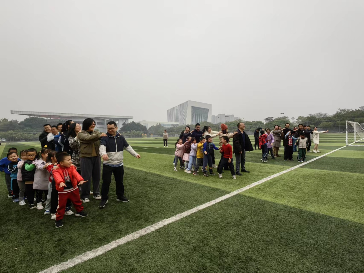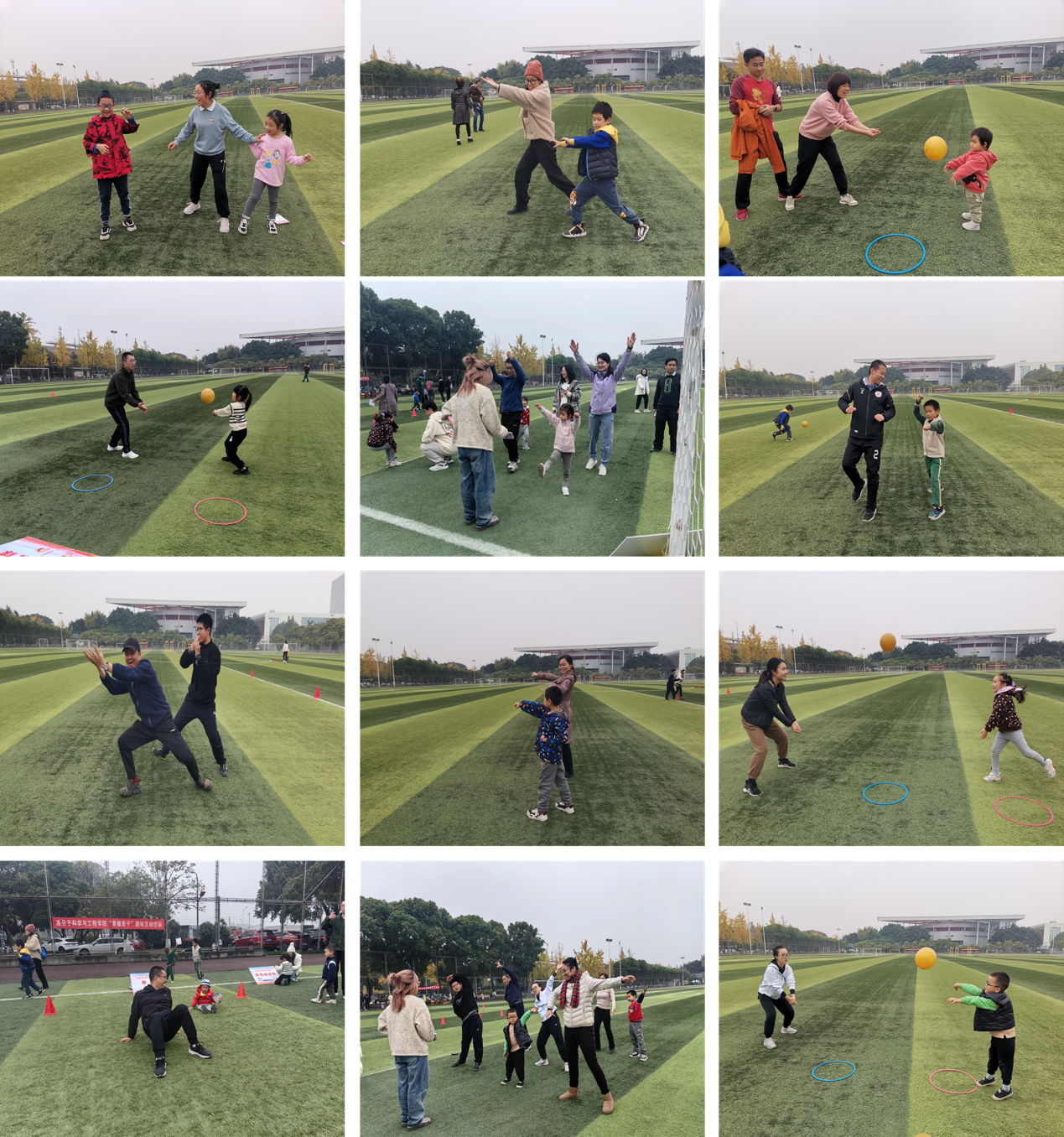 亲子趣味活动是本次活动的重点内容,其中包含30米蒙眼跑、趣味跳远、篮球挑战赛、足球大闯关、双人排球、体操大比拼、乒乓球闯关、创意武术和趣味羽毛球等10项创意亲子互动项目。30米蒙眼跑比赛不仅考验了参赛者的速度和耐力,更需要增进了亲子间的默契和信任。篮球挑战赛和足球大闯关展现了老师们的球技和家庭团队合作精神。双人排球比赛则要求家长和孩子们配合默契,体操大比拼则展示了家庭成员们的协调能力。活动中,整个足球场上欢声笑语此起彼伏,现场如同犹如节日一样热闹非凡,每个人的脸上都洋溢着快乐的笑容,驱散了初冬的寒意。