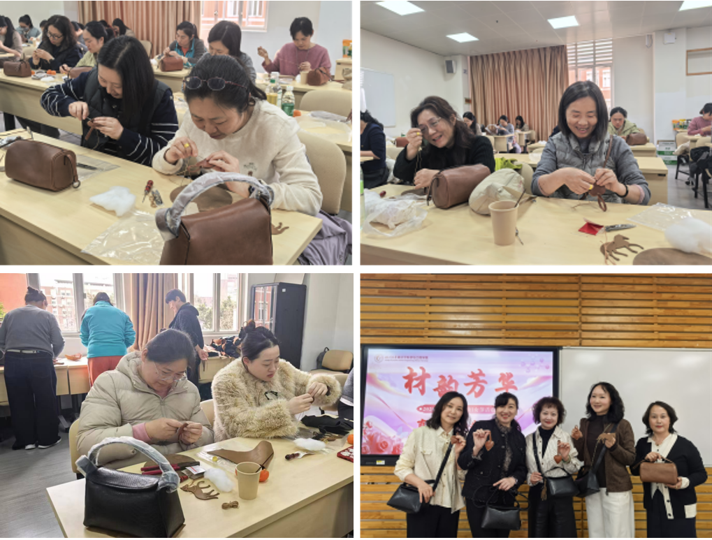2026年3月6日下午,学院以“材韵芳华”为主题,组织女教职工开展真皮包制作活动,通过材料科学与手工艺术的融合,庆祝第116个“三八”国际劳动妇女节。校工会副主席冷泠、机关工会主席岳华、学院工会主席李艳梅及教师代表共百余人参与活动。