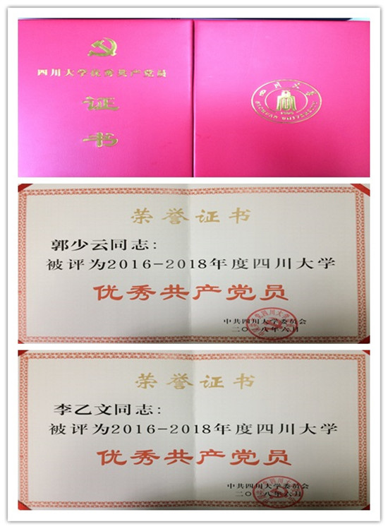 祝贺 郭少云、李乙文两位同志获得学校党委表彰