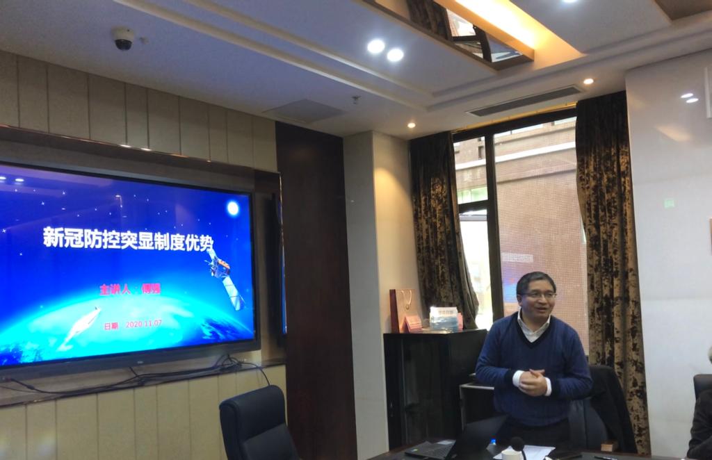 随后,学院院长傅强同志给全体党员做 “新冠防控突显制度优势”的党课,强调指出国家防控工作取得的成效,再次彰显了中国共产党领导和中国特色社会主义制度的显著优势,而党的领导是打赢疫情防控阻击战的坚强政治保证。全体党员、党员积极分子要增强“四个意识”、坚定“四个自信”、做到“两个维护”, 进一步锤炼宗旨意识,牢记初心使命,践行党的路线,为推进新时代学科发展做出积极贡献。