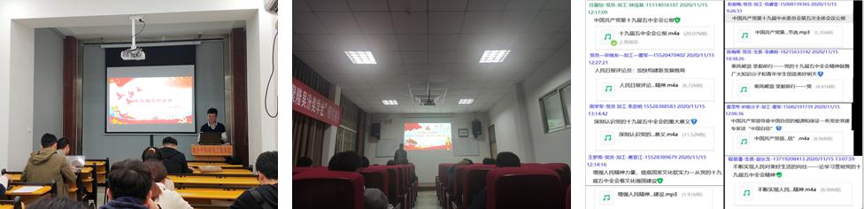 党的十九届五中全会召开后,学院党委积极部署学习宣传和贯彻落实工作,坚持把学习宣传贯彻五中全会精神作为当前和今后一个时期的重要政治任务。近日来,各党支部相继开展专题学习会,认真学习领会党的十九届五中全会精神。大家创新学习方式,采取集中学习、研讨及诵读活动等多种形式,推动五中全会精神走深走实。
