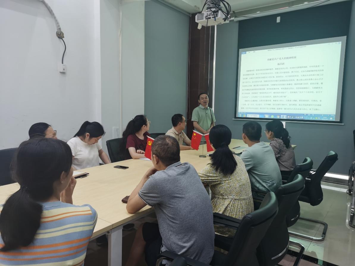 支部书记杨昌跃同志首先向支部党员同志们讲了题为《奉献是共产党人的精神特质》的党课,从党的百年奋斗历史讲起、到一个个党员的先锋模范作用,无不展示了奉献这一党的鲜明底色的重要性。结合实验室党员职工的岗位职责,我们更是要以奉献为美,将传道授业、服务师生、服务科研工作、服务社会作为心中的崇高理想,不计回报,真诚付出。