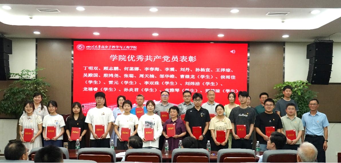 学院党委副书记钱祉祺同志宣读《表彰决定》。学院党委书记牟德富、院长赵长生向丁明双等22名“优秀共产党员”颁发获奖证书;学院党委副书记钱祉祺、副院长冉蓉为陈蓉等12名“优秀党务工作者”颁发获奖证书;学院党委书记牟德富、党委副书记吴宏为高分子材料系党支部等4个“先进党支部”的代表颁发获奖证书。