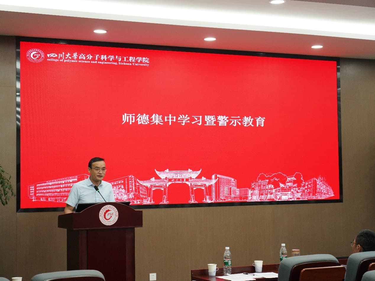 赵长生院长以《以科技创新支撑高质量发展》为题讲授了主题教育专题党课,他表示推动学院高质量发展,必须坚定不移贯彻新发展理念,厚植发展优势,全力推动科技创新,打造具有全球竞争力的先进高分子材料品牌。