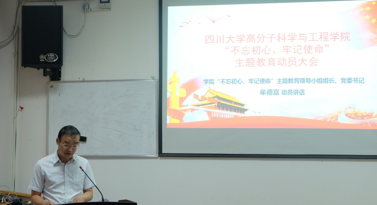 学院“不忘初心、牢记使命”主题教育领导小组组长、党委书记牟德富作动员讲话。牟德富书记结合学校部署及学院工作实际情况,就开展好“不忘初心、牢记使命”主题教育提出了三点要求:一是深刻认识主题教育的重要内容和时代意义,以高度的历史使命感推进主题教育;二是牢牢把握要求目标和方法步骤,紧密结合学院实际开展好主题教育;三是全面加强组织领导,确保主题教育有序有力开展。牟德富书记强调,我们要紧密团结在以习近平同志为核心的党中央周围,坚决贯彻党中央和学校党委的各项决策部署,高度重视,高位推进,确保此次主题教育取得扎实成效,全面加快推进一流学科建设。