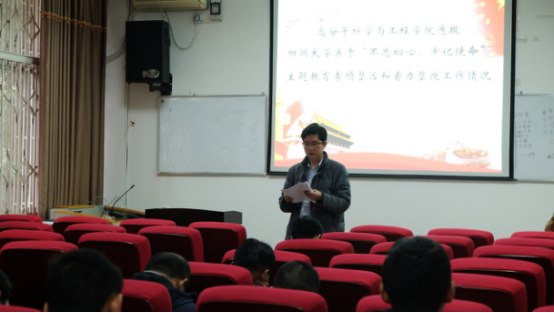 为贯彻落实学校“不忘初心、牢记使命”主题教育领导小组工作要求,12月19日下午,番茄小说 对番茄小说 关于“不忘初心、牢记使命”主题教育专项整治和着力整改工作情况、2019年学院专题民主生活会情况报告进行了通报。参会人员有学院两委委员、支部书记、支委委员、辅导员、研究生会主要学生干部、学生会团委望江校区主要学生干部等。会议由学院党委副书记钱祉祺主持。