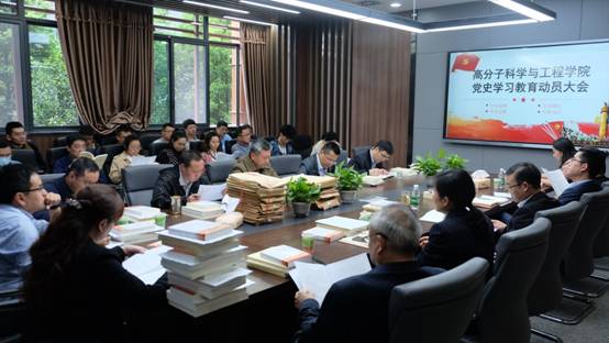 牟德富书记作动员讲话。他指出,为了高标准开展好党史学习教育,要做到以下三点:一是要提高政治站位,高度重视,理清“为什么学”;二是要围绕目标要求、内容,明白“学什么”;三是要以史为鉴,学以致用,真正做到学而信、学而思、学而行,解决“怎么学”以及“如何学好”,增强学习实效。通过党史教育,凝练和传承川大高分子红色基因,落实到为学院事业发展和师生服务上“谋大事、解难事、办实事”,推动学科发展。