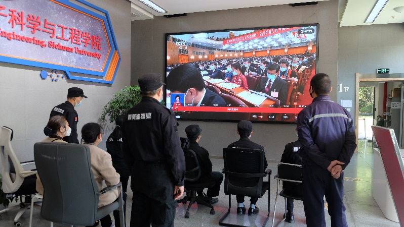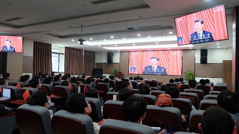 在高分子国重室320报告厅的集中收看会场,王琪院士、张熙教授、吴宏副书记及师生代表一起收看电视直播,认真领会报告精神。大家纷纷表示要进一步深入学习、深刻领会报告精神,用党的最新理论成果武装头脑、指导实践、推动工作。