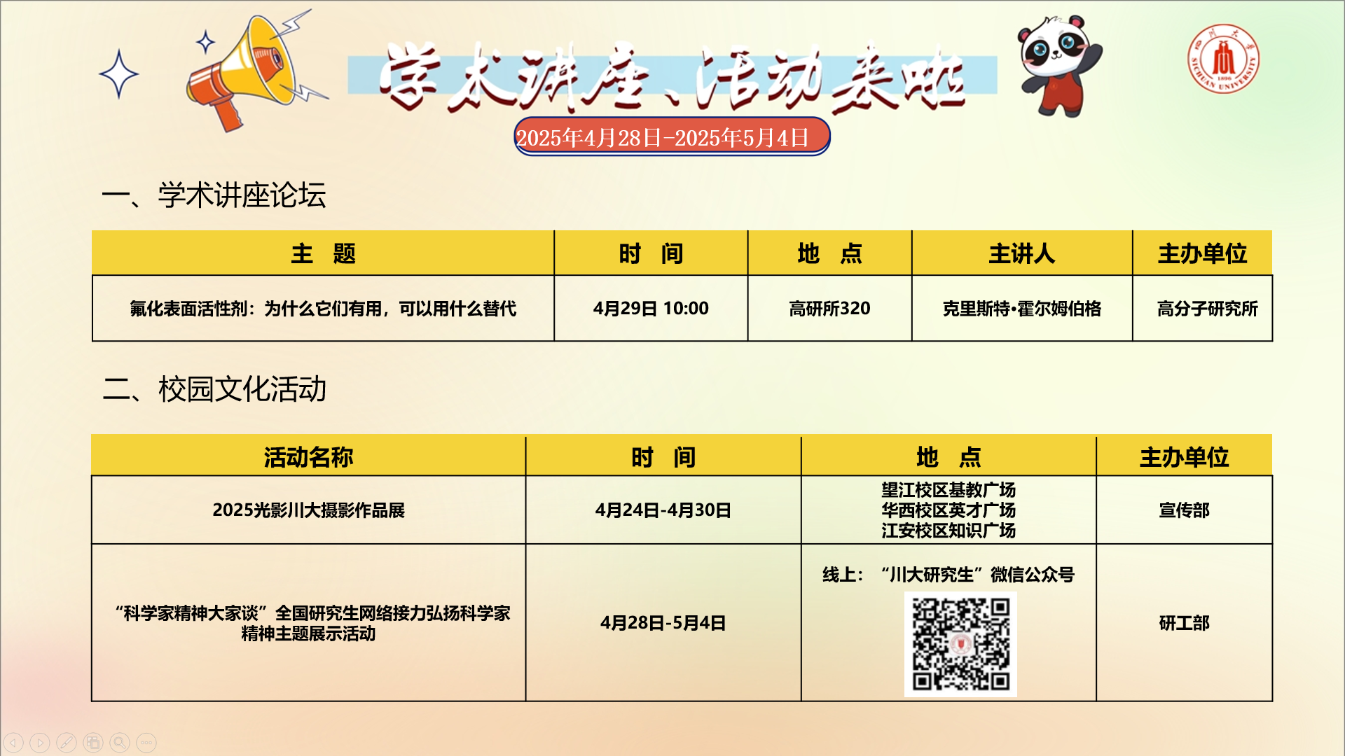 学术讲座及校园文化活动预告(4月28日-5月4日)